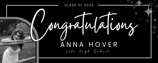 Graduation Banner - Congratulations Graduate with Stars - 2x6 - Black and White